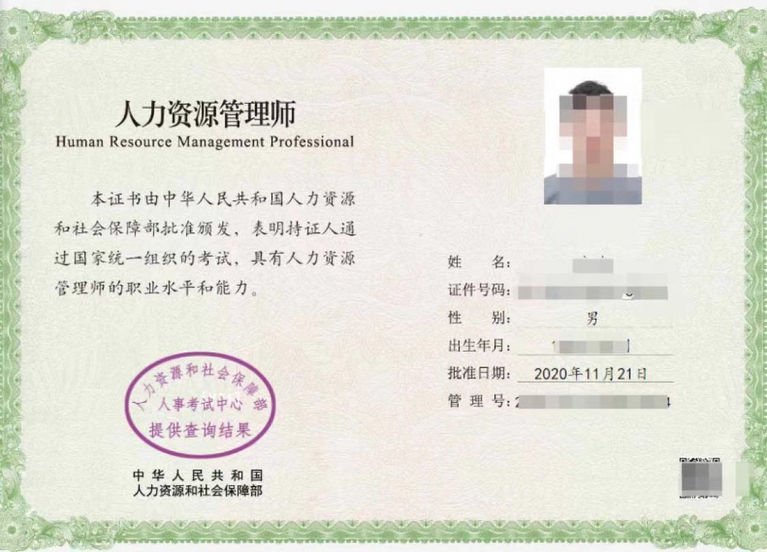 新版的经济师人力资源管理专业的证书图片如下: