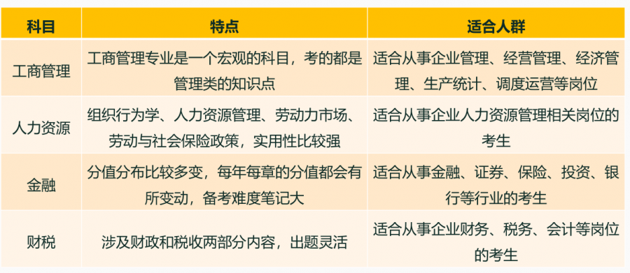 考试时间 报考专业人群分析人群 在这10个报考专业中,根据以往数据统计,工商管理、人力资源管理、金融、财政税收、建筑与房地产这几个是相对热门专业,难度因人而异,一般工商管理及人力管理相对简单,金融和财税相对难一些。 证书作用 1、获取职称,2004年改革后,参加软件水平考试并通过的人员,考试通过哪级考试,即获得相应的职称资格; 2、升职加薪。获取国家职业资格证书,应聘敲门砖,升职加薪; 3、能力提升。系统学习经济相关知识,获取认证; 4、积分/技能落户。享受买房买车,子女上学平等待遇。 考试科目选择 经济师考试报考专业设有10个专业,含工商管理、农业经济、财政税收、金融、保险、运输经济、人力资源管理、旅游经济、建筑与房地产经济、知识产权,涵盖了社会生活各个经济相关岗位可能需要用到的专业技术知识。 经济师热门专业有4个分别是: 人力资源管理、工商管理、金融、财政税收 近年来这4个专业每年的报考人数都超过了10万人(经济师考试总计报考人数在50-70万人),占据了60%以上的考生。 报考热门专业的好处是: 一、报热门专业的好处: 讲师经验丰富、题库讲义资料成熟,备考过程可以做到有条不紊; 2.证书应用范围广泛,职称评审流程齐全,知识通用性强,相关人才岗位充足; 二、报考热门专业可能会存在这些问题: 1.由于报考人数多,可能需要增加考试场次(参考前两年的人力+工商等),比其他专业要多组一套卷子,且由于参考人数众多竞争加大,知识颗粒度更细,对备考人来说每年都有新的挑战; 2. 由于热门+畏难而选择热门专业,但专业方向与工作单位或职业性质不完全对口,可能造成职称评审不通关、或不被高级评审组认可。 每个人报考经济师的目的不同,有人因为工作需要,有人为了提升自我,有人为了积分落户等。大家可以基于个人报考目的,选择不同专业。 经济师考试题型 中级经济师设《经济基础知识》和《专业知识和实务》两个科目。 满分140分,84分合格。 经济师答题技巧 单选题:每题只有1个最符合题意的选项,其余的选项可能是错误的,有时选项本身说法是对的,但它们不是最符合题意。 多选题:每题的备选项中,有2个或2个以上符合题意,错选,本题不得分;少选,所选的每个选项得0.5分,所以在不确定没把握的情况下,尽量少选,不去多选。 案例分析题:由单选和多选组成,需要考生自己分辨是单选、多选。但是有一个不变的原则是:在不确定没把握的情况下,尽量少选。