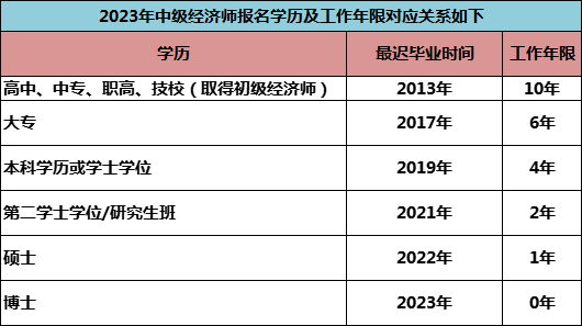 凡遵守中华人民共和国宪法和法律,具有良好的道德品行和业务素质,符合初级、中级、高级经济专业技术资格考试报名条件的经济专业人员,均可报名参加相应级别的考试。 (一)具备下列条件之一者,可以报名参加中级经济专业技术资格考试: 1.高中毕业并取得初级经济专业技术资格,从事相关专业工作满10年; 2.具备大学专科学历,从事相关专业工作满6年; 3.具备大学本科学历或学士学位,从事相关专业工作满4年; 4.具备第二学士学位或研究生班毕业,从事相关专业工作满2年; 5.具备硕士学位,从事相关专业工作满1年; 6.具备博士学位。 (二)取得导游资格、拍卖师、房地产经纪人协理、银行业专业人员初级职业资格,可对应初级经济专业技术资格; 取得房地产估价师、咨询工程师(投资)、土地登记代理人、房地产经纪人、银行业专业人员中级职业资格,可对应中级经济专业技术资格; 取得资产评估师、税务师职业资格等相关职业资格,可根据《经济专业人员职称评价基本标准条件》规定的学历、年限条件对应初级专业技术资格,可作为报名参加高一级经济专业技术资格考试的条件。 (三)自2020年起,知识产权专业人员参加经济系列专业技术资格考试或职称评审。此前按照相关规定获得的知识产权领域相关职称,可作为申报经济系列知识产权专业高一级专业技术资格考试或评审的条件。 以上专业工作年限计算截止日期一般为报考年限的12月31日。 总结 报名时间一般为7-8月份(以当地人事考试部门公布的时间为准) 考试报名实行网上报名、网上交费。报考人员可在规定时间内在中国人事考试网报名参加考试的操作。报名前,须完成注册、上传照片等操作。报名时,须认真阅读并知晓《报考须知》等有关内容,在规定时间内提交报名信息并完成交费。报名具体安排详见各省(区、市)有关通知。 1. 网上报名的步骤一般为:网上填写报名信息--现场资格审核--审核通过--确认缴费 2. 网上填写报名信息,要注意各类年限(工作年限、专业年限)要按照符合中级报考条件的时间来填写,并且是真实可以提供相应证明的,以免审核不通过。 3. 现场资格审核:一般需要提供(1)报名信息表(2)身份证原件(3)学历证明原件(4)工作证明年限证明原件(5)有些省份需要个人诚信证明等。注意有些省份是考后审核,报名的时候,信息确认完毕,即可缴费。考完试凭通过的成绩单去指定现场进行审核。 4. 确认缴费。必须要确认缴费完成了,才算最终报名成功。 原则上经济师考试准考证打印时间一般在考前一个月左右开通 评职称、积分落户、升职加薪 免考初级或中级银行从业资格 考高级经济师的前提、抵扣税 初级、中级经济专业技术资格考试成绩实行2年为一个周期的滚动管理方法,应试人员须在连续的两个考试年度内通过全部应试科目,方可取得相应级别经济专业技术资格证书。 初级、中级经济专业技术资格考试合格者,颁发人力资源社会保障部统一印制的经济专业技术资格证书,在全国范围内有效。人力资源管理和知识产权专业分别颁发相应级别的人力资源管理师证书和知识产权师证书。获得初级、中级经济专业技术资格即可认定具备助理经济师(助理人力资源管理师、助理知识产权师)、经济师(人力资源管理师、知识产权师)职称。 高级经济专业技术资格考试达到全国统一合格标准者,颁发人力资源社会保障部统一印制的经济专业技术资格考试成绩合格证明,合格证明自考试通过之日起,在全国范围5年内有效。参加高级经济专业技术资格考试合格并通过评审者,可获得高级经济师职称