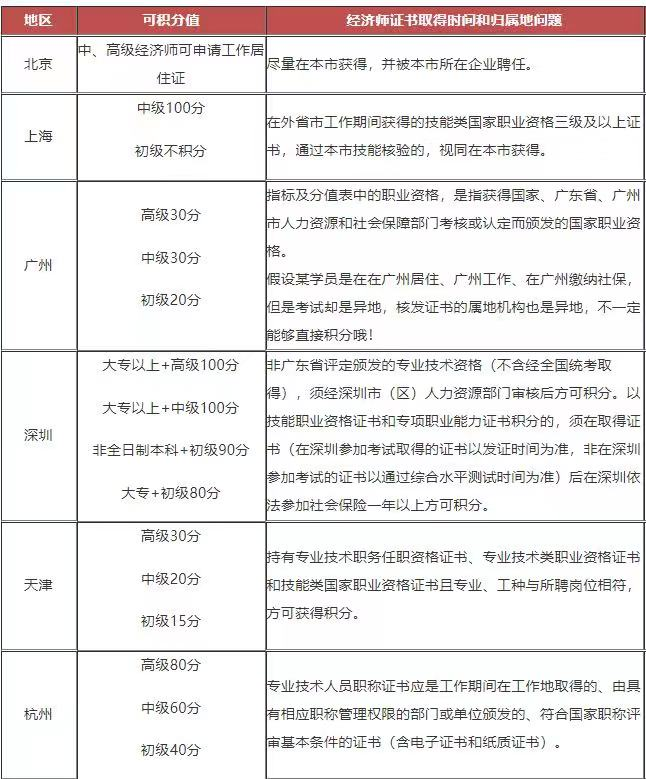 “ 1 积分的好处 得知积分落户政策解决以上难题时,终于能松口气。 不过,打开积分政策的细则却发现,学历已是固定,太难提升;发明专利更是难于上青天;公共服务最多加10分(以上海市为例),完全不够... “ 2 违法积分不可行 2021年北京市人力资源和社会保障局就发布了《关于对蔡某某等7名积分落户材料弄虚作假人员处理情况的通告》。 细细研究各市积分落户细则后,雪饼发现,想要合法规又能快速获取大额积分,考取职业资格证书是最便捷的方法! “ 3 可积分落户的城市 我收集了部分城市通过经济师证书可加积分和条件,大家可以参考一下~(具体详见当地人社局官网) 从表格可以看出,大部分城市都非常认可经济师证书,所加分值也是非常高的。尤其是以上几个城市的同学可一定要尽早备考,尽早拿下证书,尽早享受福利!