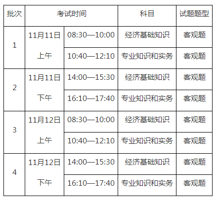 初、中级经济考试分2天,上、下午共4个批次实施,具体考试时间和批次划分以准考证为准。
