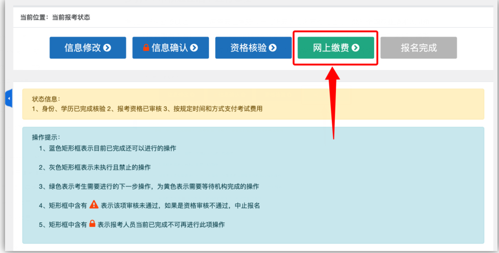 报名人员完成交费后,报考科目、考区及其他相关报名信息不得更改,且报名费不予退还; 已完成网上报名但未按时成功缴费的,在缴费截止日期后视为放弃考试报名,一般情况下无法补交考试费用,请务必关注当地缴费时间节点!